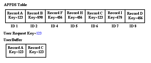 with the access mode for the table set to Indexed. Like an appds_read_record call the user specifies