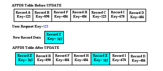 Shown in figure 2.3 is an example of a Keyed update of an APPDS table. In this example the