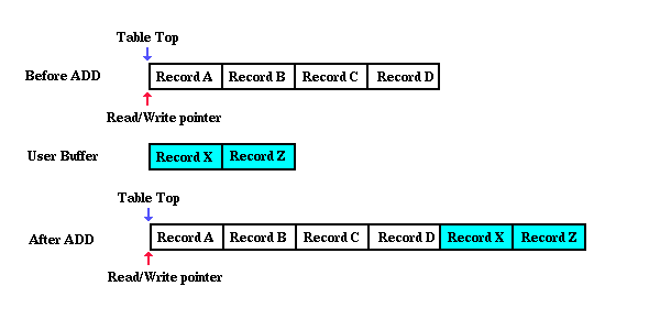 when ADDing record data a NULL value can be passed to the routine to indicate that all new records be added starting