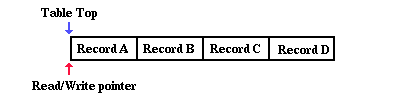 the read/write pointer for the table is set to the top.