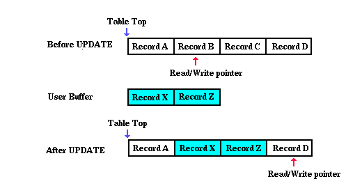 pointer. The routine uses the read/write pointer for the location of the first record to update and the next